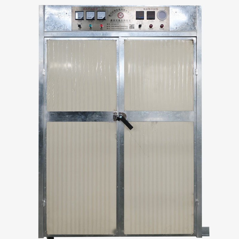 Suporte ao gabinete Aço: 50*50 e 50*100 Tubos galvanizados soldados juntos, com espaçamento de 480 mm, com o modo de semi-semi-semi-semi-semi-semi-semi-semi-semi-semi-semi-devassinado ERP. Isolamento do gabinete: painéis de sanduíche de aço com cor de lã de lã de 50 mm de rocha. Controles elétricos: Aparelhos elétricos de baixa tensão de Schneider com proteção contra a temperatura excessiva, desligamento cronometrado, escape cronometrado, proteção contra perda de fase e proteção contra sobrecarga. Erp Sistema: Delta PLC, sensores, fonte de alimentação de comutação de poço médio, tela de toque delta. Sistema de ar circulante: um ventilador centrífugo de 550W com escapamento descendente, escapamento para cima e ar devolvido. O sistema de aquecimento está localizado na parte superior do gabinete. Sistema de exaustão: um ventilador de exaustão de 180W com dois temporizadores (configurável: tempo de exaustão e tempo de parada). Aquecimento: um sistema de aquecimento elétrico, modo de múltiplos tubos (total de 12 linhas), 9kW + 9kW = 18kW, com opções de alta e baixa temperatura. Carregamento e descarregamento de material: carregamento de frente para trás, fácil de abrir e fechar. Estrutura da porta: Folha galvanizada 2.0. Porta de painel de sanduíche de aço revestido a cores. Acessórios fornecidos: 1. 20 rolos de alimentação (tubo galvanizado de 2 polegadas, quatro rolamentos 6305 por rolo). Número de camadas: duas camadas, faixas pesadas em forma de C, com o menor centro de filme 650 mm acima do solo. O espaçamento da faixa é de 850 mm. Temperatura de operação: ajustável de 40 ° C a 80 ° C, com uma tolerância a ± 2 ° C.
